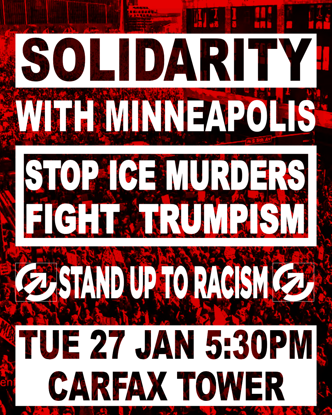 The march will take place on the same day as millions take to the streets of the US on ‘No Kings’ demonstrations against Trump & ICE in the wake of the Minneapolis murders of Renee Good and Alex Pretti.