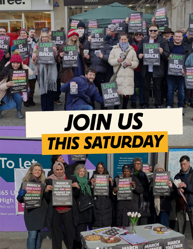 This is our chance to give a massive boost of confidence to anti racists everywhere as they prepare to take on Reform UK in the May elections and the far right on the street.
